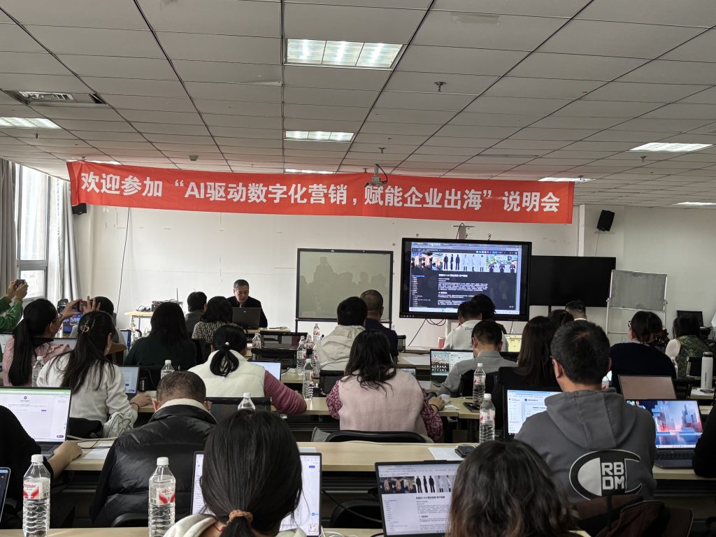 作为本次说明会的核心技术环节,方得技术(沈阳)有限公司总经理韩春带来“AI驱动数字化营销:实战演练与落地指南”专题授课,全程紧扣企业实操需求、摒弃空泛理论,围绕企业出海营销痛点,通过现场实操演示、一对一指导的形式,直观展示AI技术在多语种高质量短视频营销素材制作中的高效应用,手把手教学员运用AI工具破解创意枯竭、成本高昂、制作周期长等行业顽疾。本次授课主打实战落地,参会企业均携带笔记本电脑全程跟进演练,现场互动热烈、学习氛围浓厚,大家通过沉浸式实操体验,不仅熟练掌握AI数字化营销的核心技巧,更真切感受到人工智能为跨境营销带来的变革性提升——大幅压缩内容制作周期、显著削减人力与运营成本,为企业开拓海外市场找到了全新突破口,也坚定了借助新技术布局全球市场的信心。